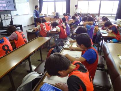 その後,高学年は実技テストと学科テスト,低学年は簡単な学科テストと実技練習を行いました。講習終了後,低学年の参加者にはPTA作成の修了証が配布されました。高学年には,後日,京都府警察本部から自転車運転免許証が交付されます。