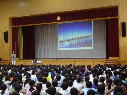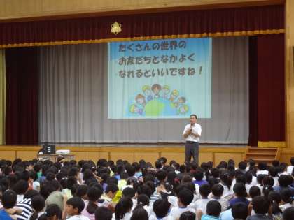 数名の教員から,台湾,アメリカ(ハワイ),ボリビア,ドイツ,トルコ,オーストラリアの国の話を聞きました。それぞれの国にそれぞれの文化があり,そこに住んでいる人がいます。いろいろな国を知り,親しみを持つことで世界の国々に興味をもち,世界の人々と仲良くなってほしいと思います。