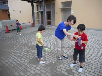 6組 ペットボトルで噴水遊び!