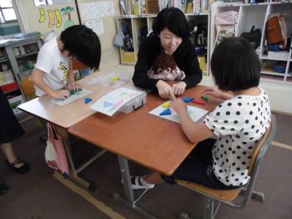 練習問題に取り組んだり,新しい図形を作ったり,友だちが作った図形を作ることに挑戦してみたり,様々な図形の完成を目指してがんばっています。