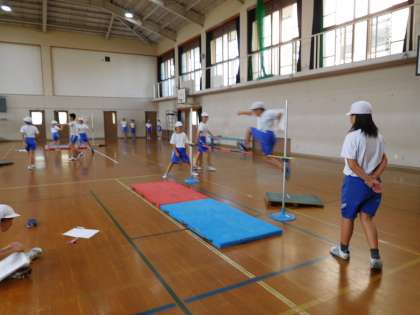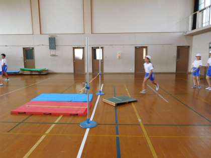 体育で高跳びの学習をしています。子どもたちはどんどん高さをあげて,意欲的に挑戦しています。これから何センチの高さまで挑戦できるか楽しみです。