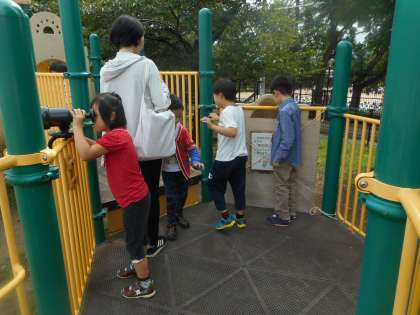 総合・生活科の学習で,校区の公園調べをしています。4月からおにぎり公園,南四ノ坪公園に行き,今回が3つ目の公園調べとなりました。
