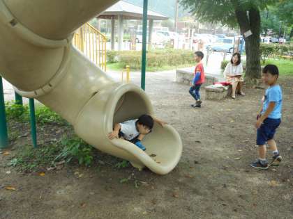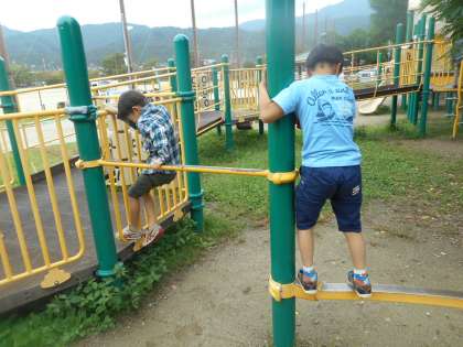 子どもたちにとってはアスレチックでの遊びが一番の楽しみだったようで,すべり台や一本橋など,それぞれの場所で楽しむ様子が見られました。遊んでみて楽しかった遊具,面白かった友だちとの遊びなどについて,これからまとめていきます。