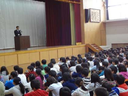 校長先生からみなみっ子のめあてについて,通知票「あゆみ」,そして安全についてお話がありました。校長先生のお話をみんな真剣に聞くことが出来ました。休み明けからは,後期になります。心新たに学校生活を送ってほしいと思います。