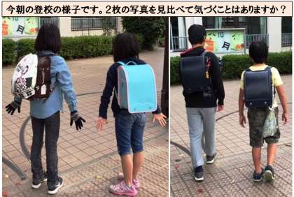 2つ目は,通知票についてです。今日は帰る前に一人一人担任の先生から「あゆみ」という通知票をもらいます。表紙には,学校目標や皆さんの名前などが書かれています。中を開くと,みなさんが前期にがんばったことが書かれています。とても大切なことが書かれていますので,おうちに帰るまで他の人に見せてはいけません。おうちに帰ったら,すぐに家の人に渡しましょう。そして,自分が前期にがんばったこと,例えば勉強のことやあいさつのこと,掃除のこと,給食のこと,お友達と仲良くすることなど,学校でがんばったことをたくさんお話しましょう。高学年の人は,自分の目標を達成するためにどのような努力をしたのかを話せるといいですね。それから,月曜日から始まる後期のめあてについても考えておいてください。
