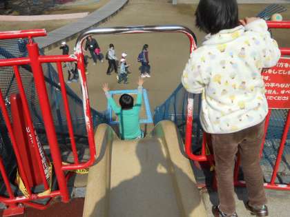 子どもの楽園の魅力は何と言ってもすべり台や迷路など,学校近辺の公園にはない大きな遊具です。遊びの計画をあらかじめ立てて楽しみにしていた子どもたちは,様々な遊具で思い切り遊んでいました。もう1つのお楽しみであるお弁当にもとても喜び,おいしそうに食べていました。