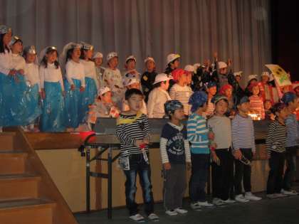 交流学級の1年2・3組「海ぞくたちと宝島」,4年「大好き わたしたちのふるさと」にも,それぞれ出演しました。同じ学年の友だちと共に,歌を歌ったり,民舞を踊ったり,よくがんばりました。