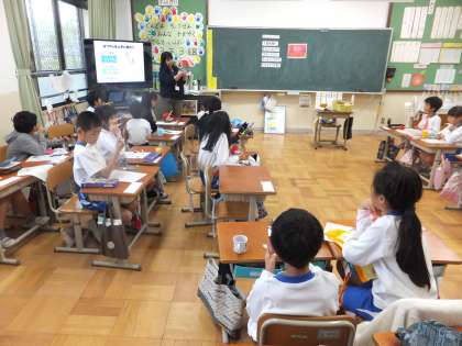 歯みがき指導を行いました。プラークテスターを使い,普段から歯みがきがしっかりとできているのかを確認しました。養護教諭から,正しい歯みがきの仕方を教えてもらったので,これからの生活に活かしていきたいと思います。