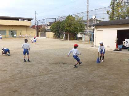 今日で「ハンドベースボール」の学習が終わりました。基本的なルールもわかってきて,試合が白熱するようになりました。ボールを打つ方向を考えたり,チーム内で声を掛け合ってどの塁にボールを投げるのかを判断したりなどの姿が見られました。試合前には作戦を立てる姿もありました。勝負事なので勝ち負けもありますが,勝ったチームは負けたチームを称賛したり,負けたチームは勝ったチームからアドバイスをもらったりしていました。子どもたちにとって,多くのことを学ぶことができた体育の学習となりました。