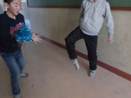 人権参観で,5年生は韓国や朝鮮の生活や文化について学び,似ているところやちがうところについて考えました。まずは食べ物や芸能など,自分が知っているものを話し合いました。キムチやビビンバなど韓国料理は子どもたちにとっても身近だったようです。遊びでは,日本のこまのような遊びに熱中していました。形は似ているのですが,回すにはかなりコツがいるようで,授業が終わったあとも挑戦していました。