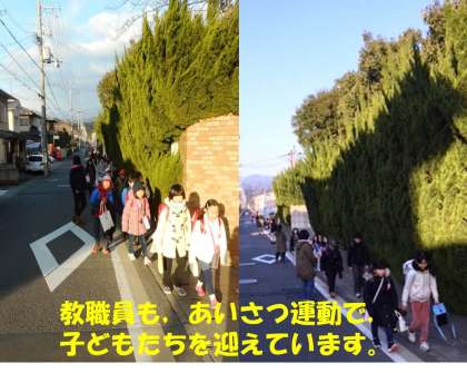 寒い朝でした。午前7時過ぎ,きつね坂の気温は−1度でした。正門に立っていると,「校長先生,見てこの葉っぱ。」と子どもたちが寄ってきました。ほう葉でしょうか,霜がついていてパリパリになった大きな葉っぱを見せてくれました。かと思えば,半そでで登校する子がいてびっくりしました。子どもは風の子,元気な子ですね。休み時間も外で遊ぶ子が多いです。