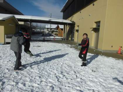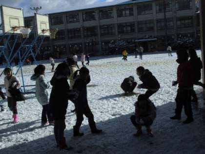 土日に降り積もった雪で,運動場は真っ白になっていました。朝から雪合戦をしたり,雪だるまを作ったりして,子どもたちはおおはしゃぎでした。外は寒いですが,遊んでいるうちに体もだんだんぽかぽかしてきます。上着や靴下の替えをしっかりと準備し,外から帰ったら手洗いうがいを徹底して,健康的に過ごしてほしいと思います。