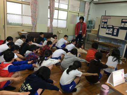 身体計測の前には,運動器検査(四肢の状態の検査)でチェックする動きを確認しました。