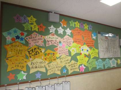 みんなの日に紹介した各学級の目標を給食ホール横の掲示板に掲示しました。
