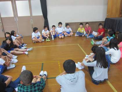 昼休み,応援団になった児童で集まり,早速練習を始めました。色ごとに集まり,今後の予定や決め事について,団長が中心となって話し合いました。本番まで,各色が一体となって頑張ります。