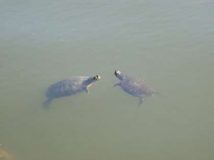 自然がたくさん溢れる中,色とりどりの花,池のコイやカメを見つけました。緑いっぱいの遊歩道を歩くと,静かで落ち着いた雰囲気を味わうことができました。対岸に飛び降りた大きな鳥を見かけたときは,みんなで歓声をあげて喜びました。