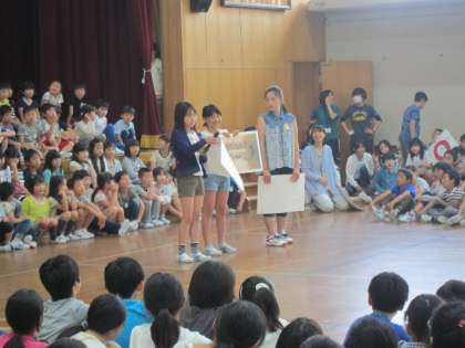 本日,3時間目に1年生をむかえる会を行いました。委員会での発表を通して,1年生と楽しい時間を過ごすことができました。これまでに,給食や掃除などのお手伝いをしながら1年生と交流をしてきました。これからも,いいお兄さん,お姉さんとして交流を深めていってほしいと思います。