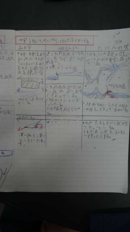 川岸や川はば、変わり流れやダム、砂防ダムなど、自分たちの考えや調べて分かったことを話し合いました。