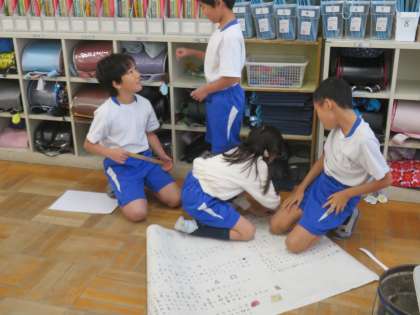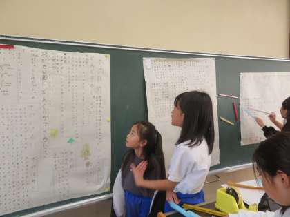 他の班の友達にも協力してもらいながら、自分たちの新聞やポスターをよりよくする活動を進めています。どんな発表になるか楽しみですね!