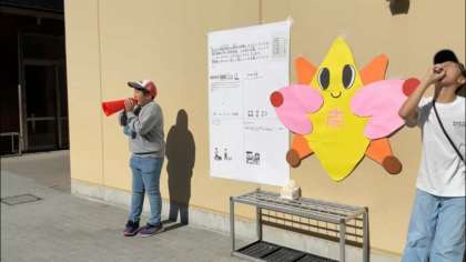 写真のグループは、公民館や岩倉のシンボルを建設することを提案するグループです。地域に住む方々の意見を取り入れて提案しようと、アンケートを設置して呼びかけました。たくさん答えていただいたので、この内容をもとに、より具体的な提案に仕上げていきます。
