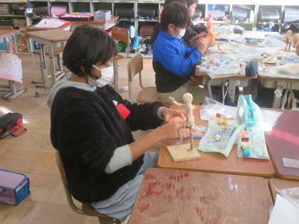 未来の自分の様子を想像して、紙粘土で人形を作っています。今日は体の基礎を作りました。