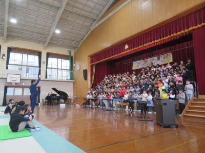 保護者の方がたくさん越えれていて、緊張しながら舞台に上がりました。