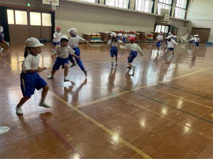 今日の体育の初めは、クラス対抗の鬼ごっこをしました。