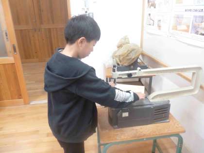 図画工作では、電動のこぎりを使ってパズルを作成しています。切りながら、板を動かすことに苦戦している様子もありましたが、安全面に気を付けながら自分の好きな形のピースに切っています。完成が楽しみです。