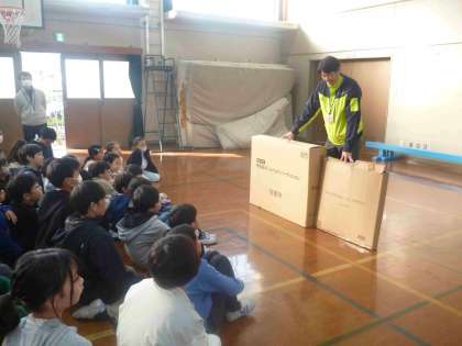 総合的な学習の時間では、防災についての学習を進めています。今日は、区役所に方に来ていただき、左京区の災害についてや、段ボールベッドの組み立て方についてなど様々なことを教えてくださいました。今日のお話や体験を今後の学習にも役立てていってほしいです。