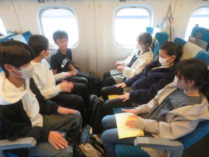 新幹線では、グループの友達と楽しく過ごしました。子どもたちは、楽しみながらもマナーを守って過ごすように努力していました。