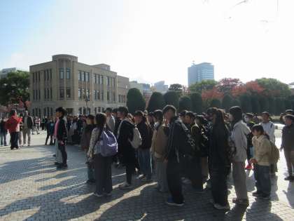 広島へ到着して、初めに平和の集いを行いました。