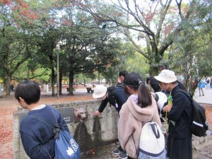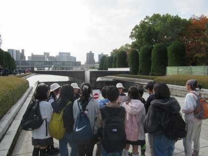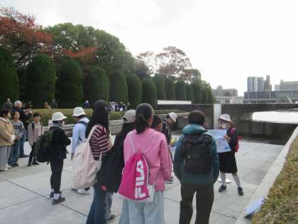 広島市立幟町小学校の6年生と合流し、平和記念公園の中を紹介してもらいながら散策しました。