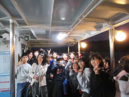 初めてフェリーに乗る人も多く、海風に吹かれる気持ちよさに心が高まっていました。