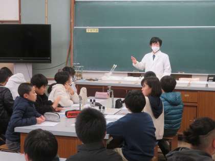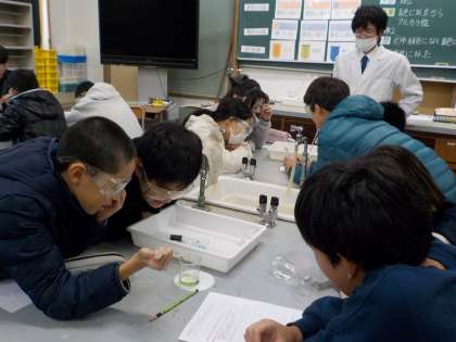 今日の5・6時間目に、洛北中学校に行って、体験授業を受けました。理科の授業では、水溶液の性質を調べる実験をしていました。