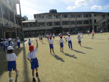 3分間同じペースで走ったり、いろいろな縄跳びの技に挑戦したりしています。