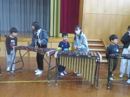 6年生が1年生に、楽器の演奏の仕方を教えてあげました。音楽発表会で見てもらえていなかったので、6年生に子たちも、張り切って演奏していました。