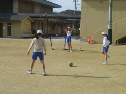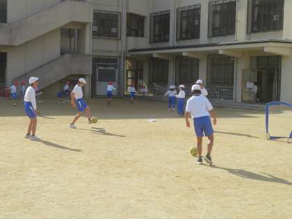 体育科の学習で、サッカーの学習が始まりました。寒い中ですが、子どもたちは、一所懸命にボールを追いかけていました。
