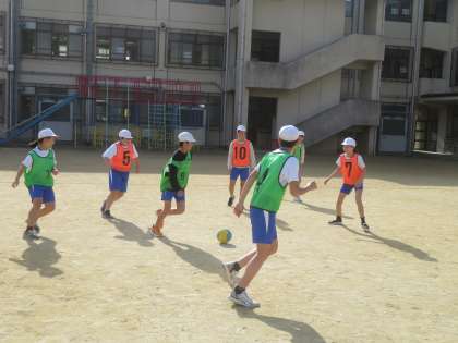試合もしました。フェアプレーの精神で、みんなにパスが回るように考えたり、みんなが楽しめるように声を掛け合ったりしている姿を見て、さすが6年生だと感心しました。
