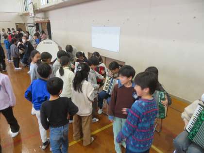 昼休みには、3年生がたくさん見に来てくれました。興味津々で聞いてくれる3年生に、6年生は優しく教えてあげていました。