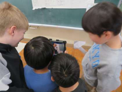 「ずっと、ポスターばかり見て話している。」「相手にもっと質問を投げかけた方がいい。」と、改善点を見つけて、さらに練習に励みました。