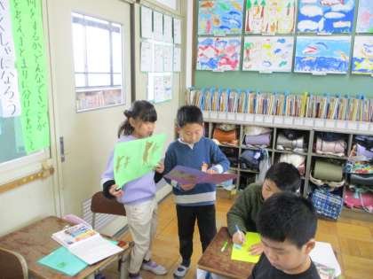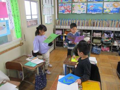 出来上がると、自然と友だちと本を交換し、意見を伝える姿が見られました。