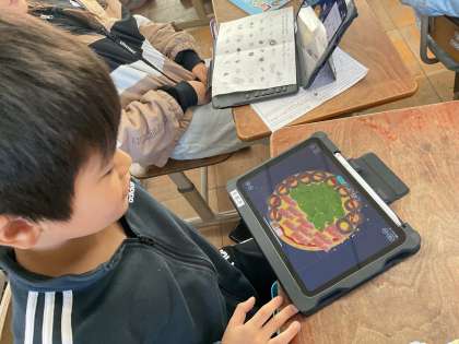 相手の好きな食べ物や好きなキャラクターなどを聞き出しながら、オリジナリティあふれるピザを作っていました。