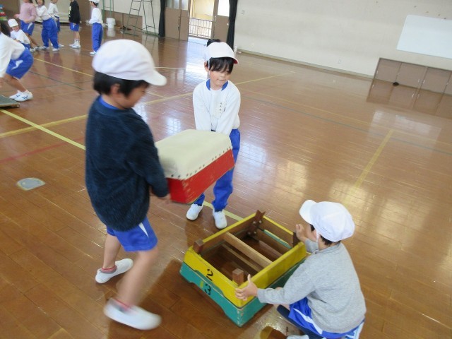 最初は、跳び箱を運ぶのも一苦労でしたが、慣れてくると友達と協力してテキパキと動くことが出来ています。