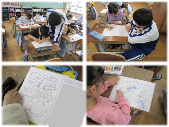 学校では、行き方探求チャレンジ体験中の中学生先生と課題や作品作りに取り組みました。
