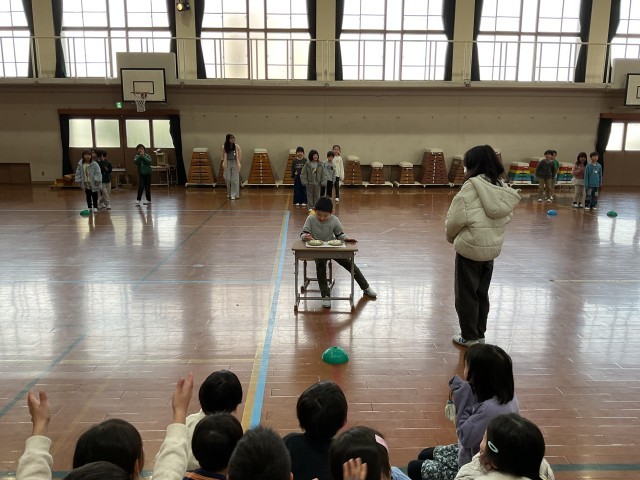 給食委員会の子どもたちが企画してくれた、豆つまみ大会がありました。代表に選ばれた5人の子どもたちは、緊張しながらも最後までがんばりました。応援にも迫力があり、クラスが一体となっていました。