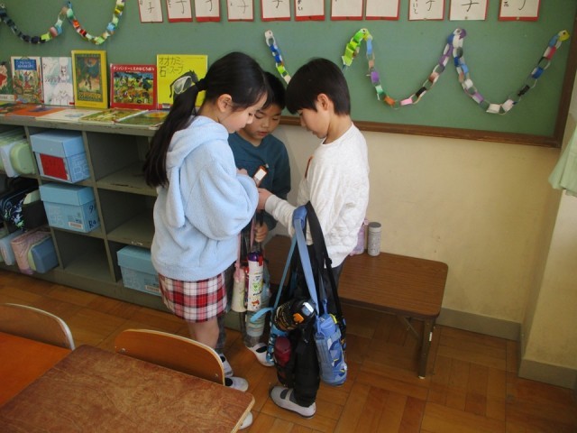帰り支度をしていると、自分の支度を終えてまわりの友だちを助けようとする子たちが見られます。