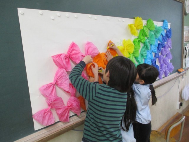 早く6年生のフロアに飾りに行きたいと楽しみにしているようです。