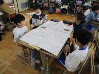 6年生への感謝とお祝いの気持ちを伝えようと、壁面飾りを作りました。