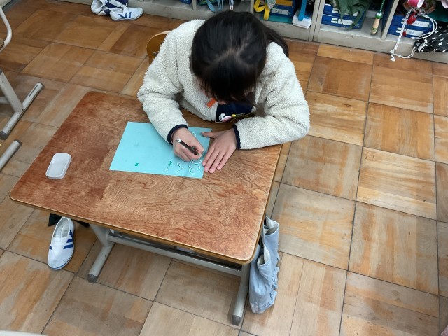 模様を描いたり、字を書いたりして学習を楽しんでいました。