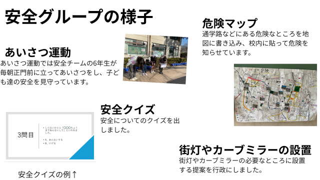 6年生では、安心安全な岩倉地域のまちづくりに向けて、様々な取組をしてきました。